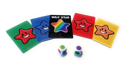 If the dice colors match both the star and background of a card in your hand, place that card on the table. The first player to place a matching card wins that hand. That winning card is now placed into a pile (discard pile) that you cannot use again until the game is over.